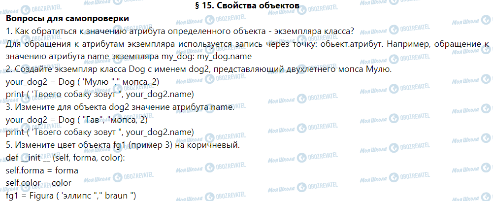 § 15. Свойства объектов. 3. Алгоритмы и программы